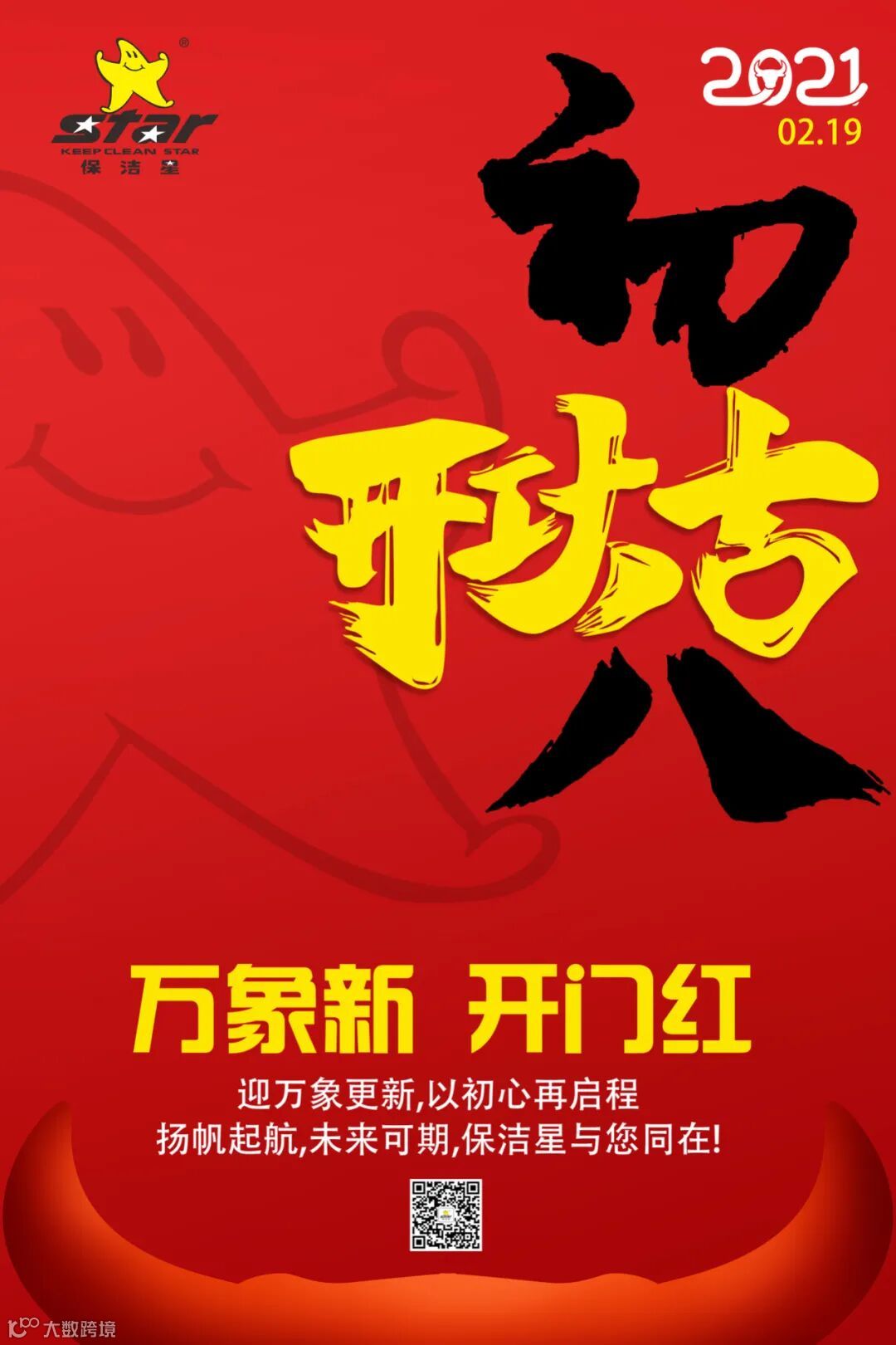 保洁星全体同仁恭祝大家新春伊始,万象更新,年年大吉,牛气冲天!