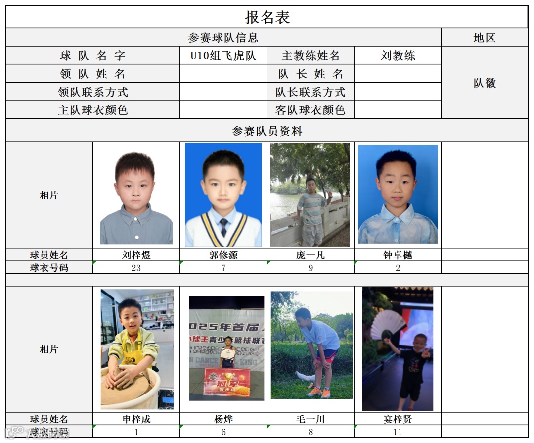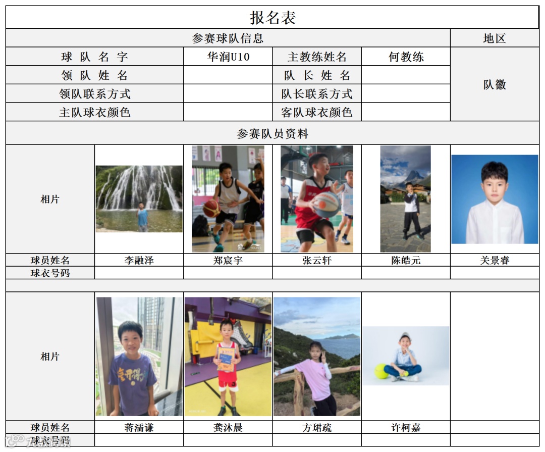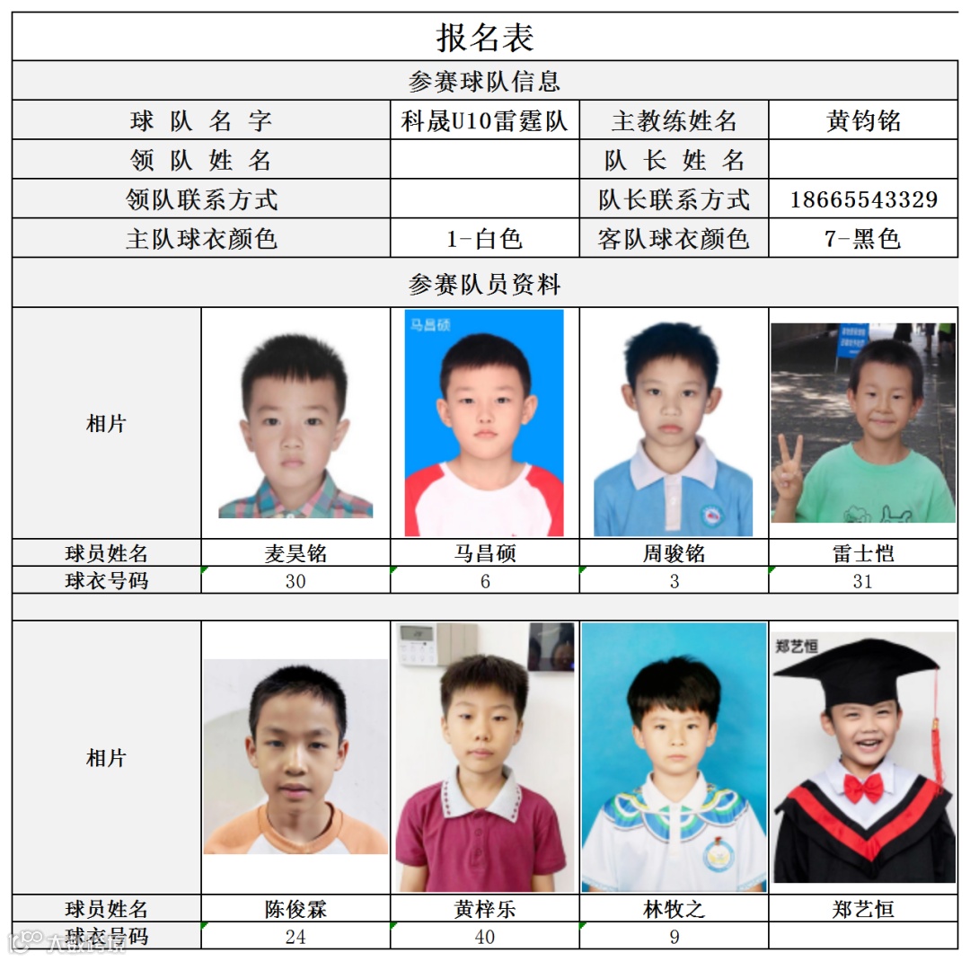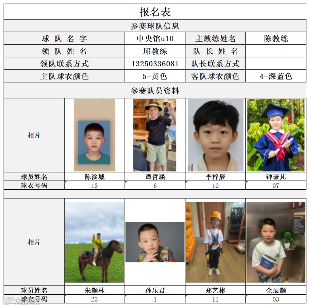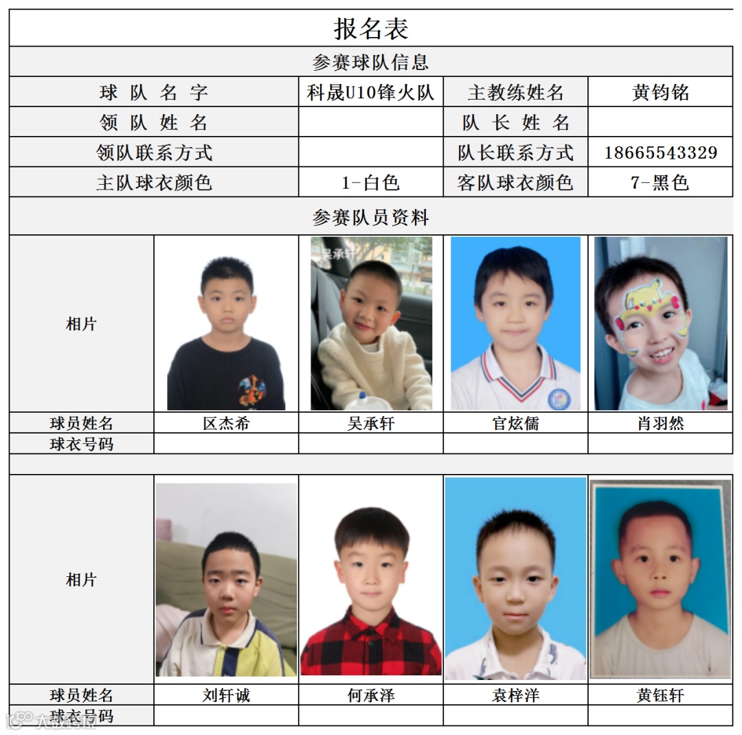 U10组球员公示