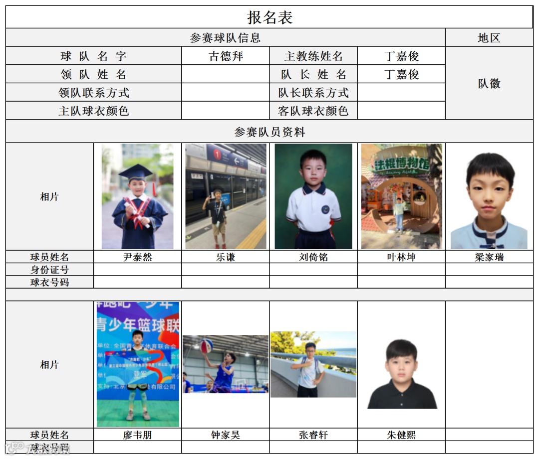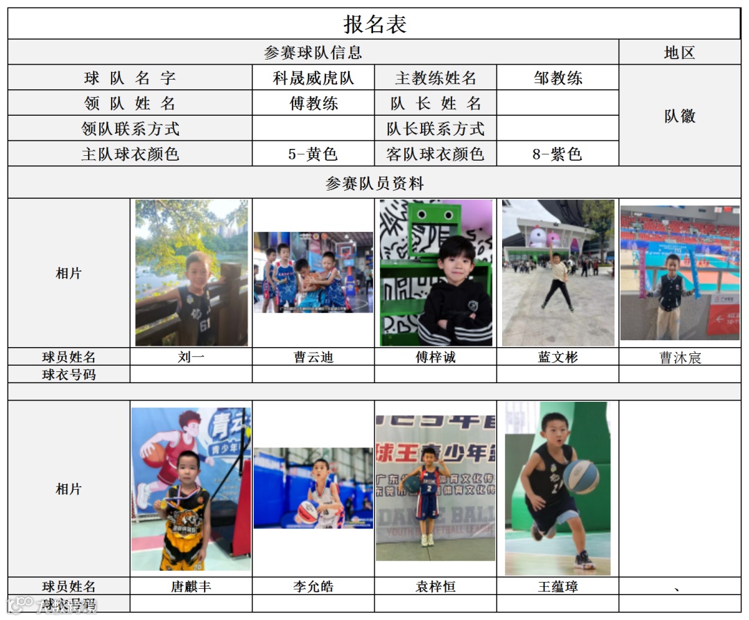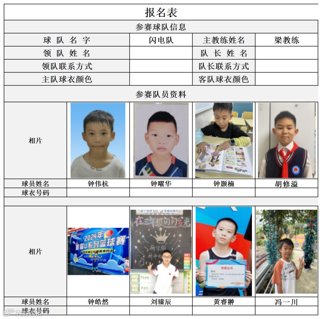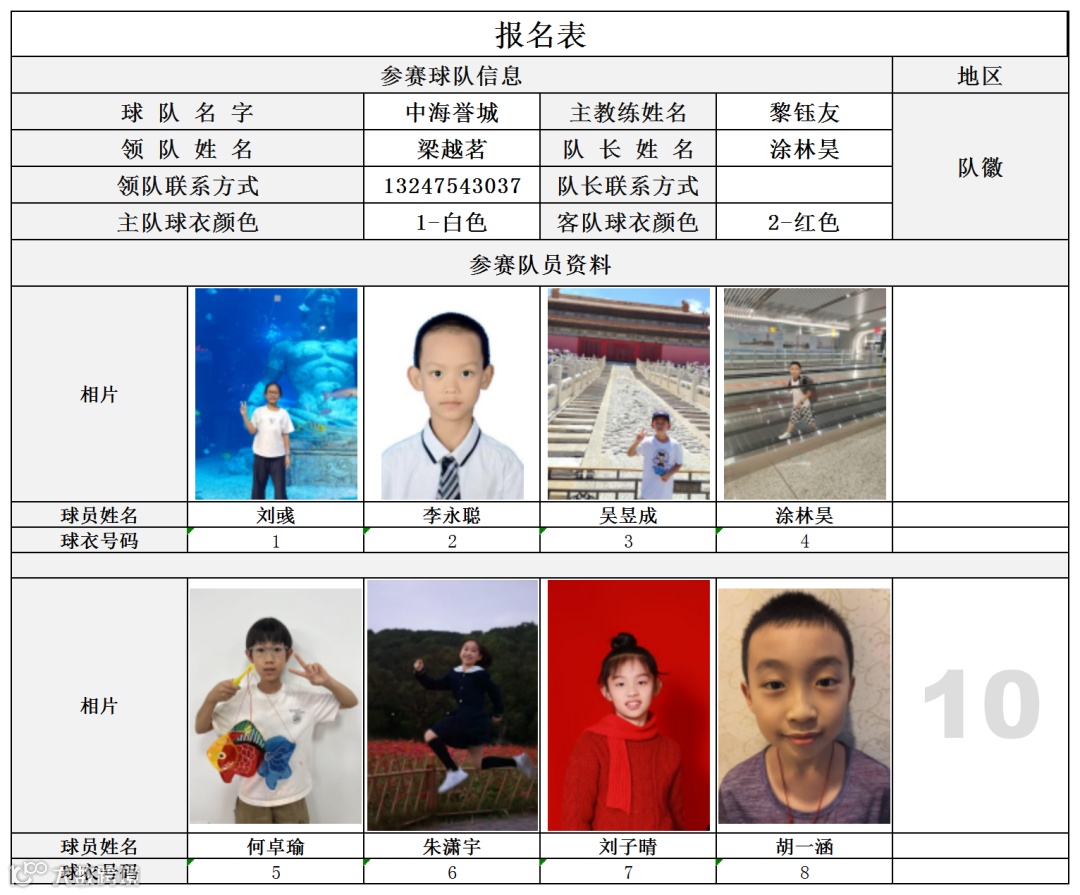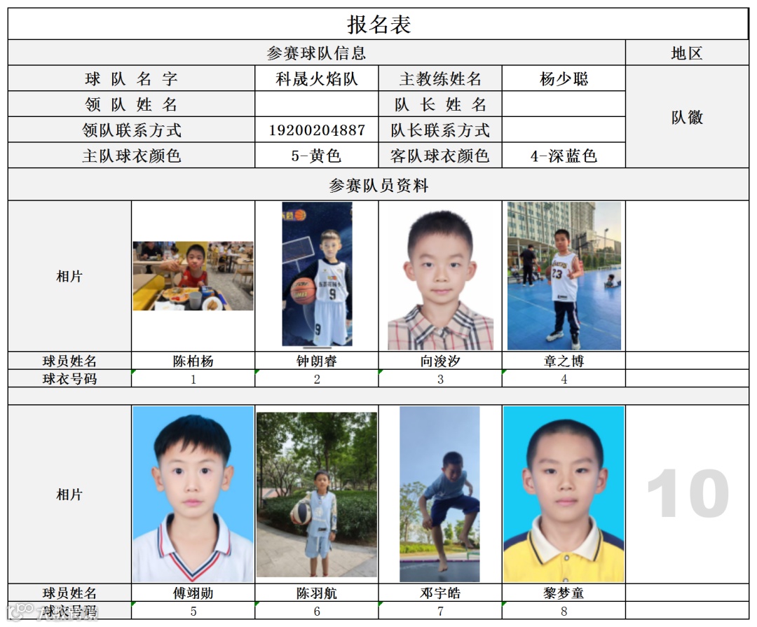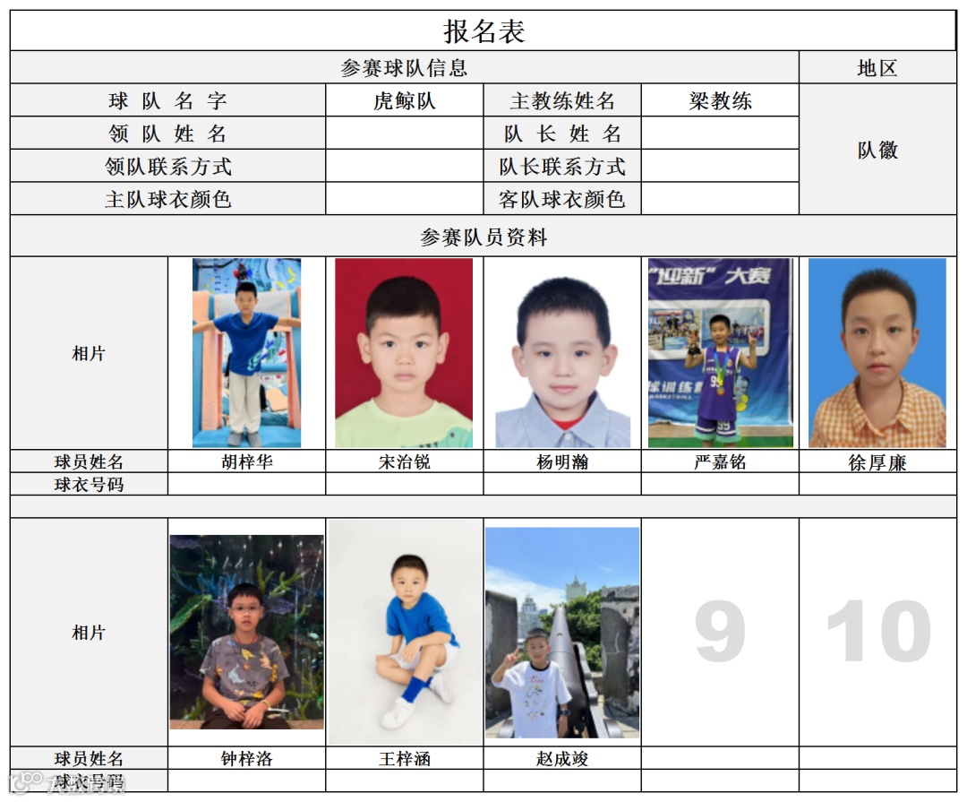 U10组球员公示