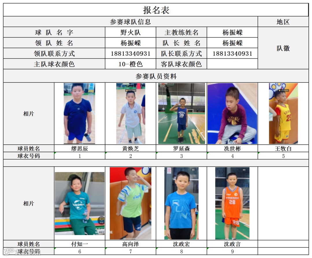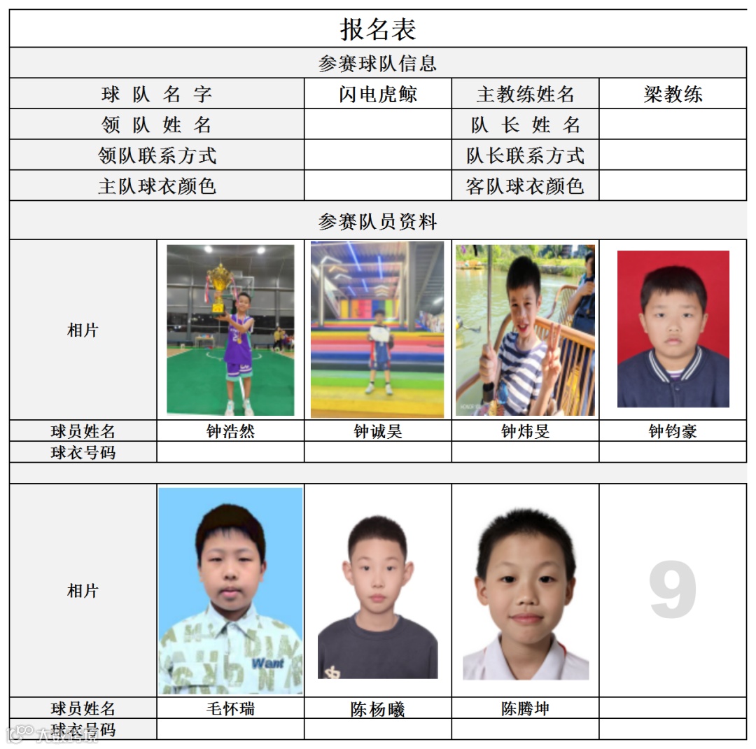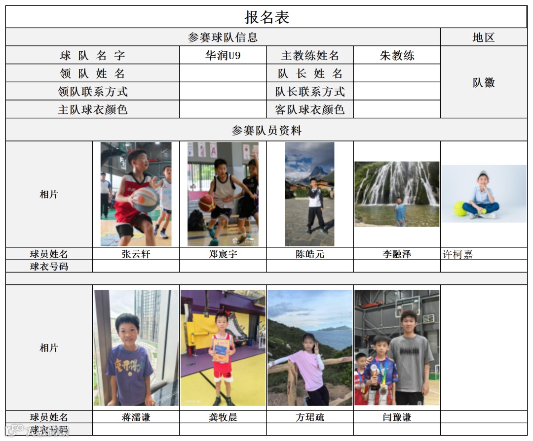 U9组球员公示