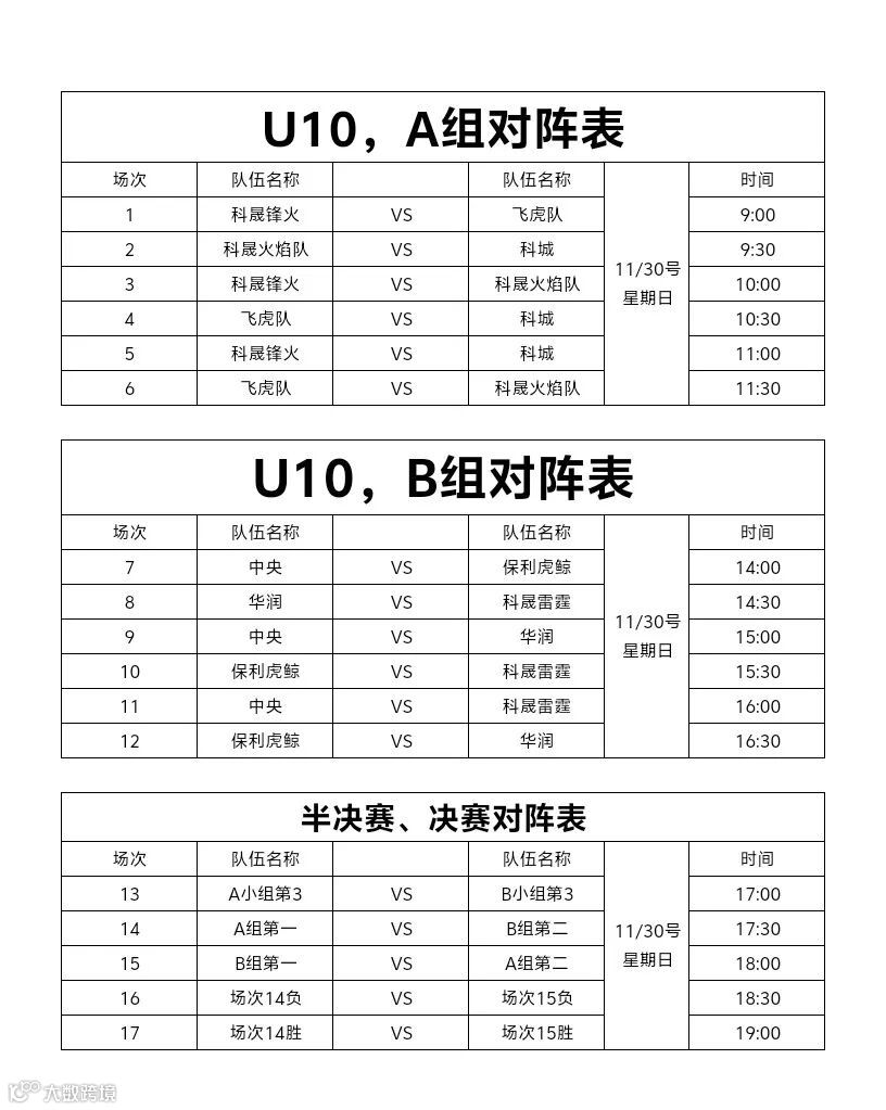 U10组比赛赛程