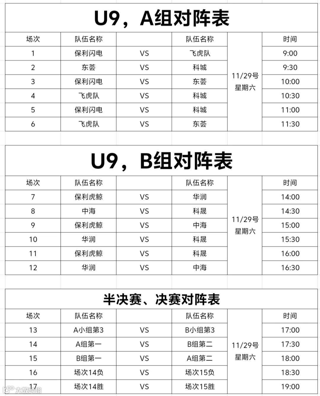 U9组比赛赛程