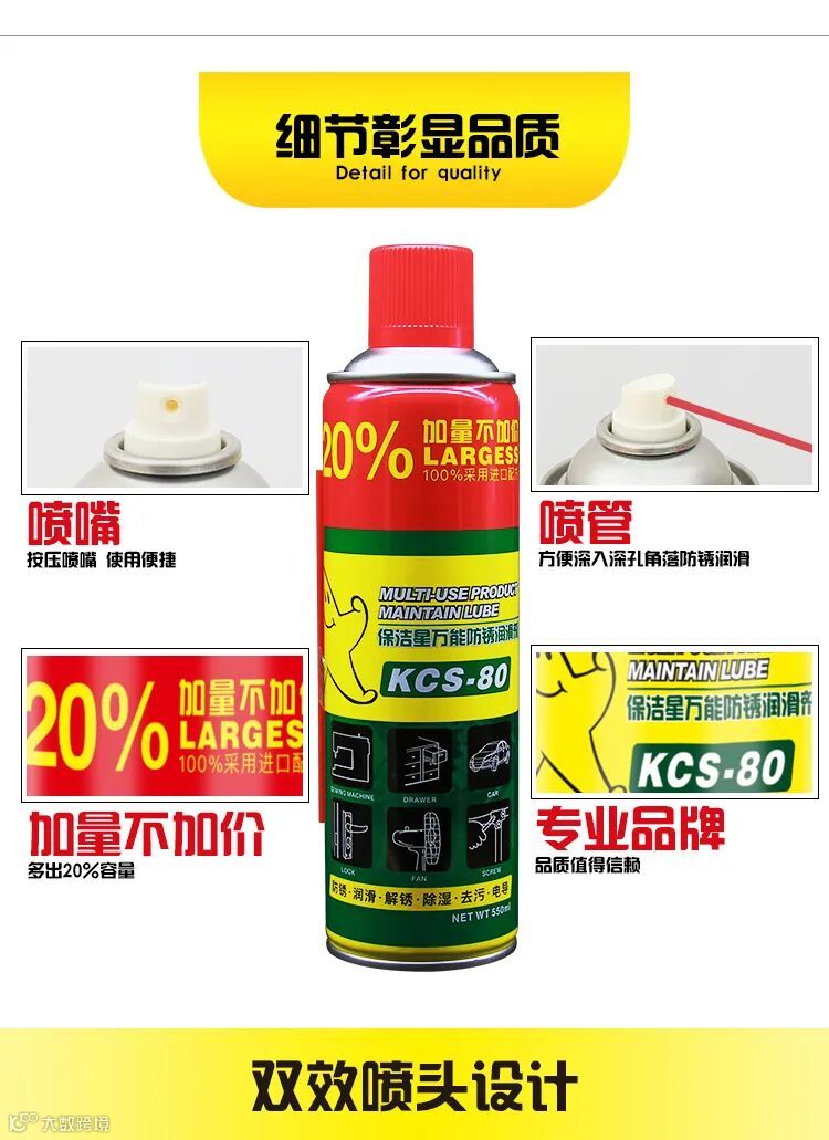保洁星KCS-80万能防锈润滑剂是采用国际先进新型环保技术配方、是经过深度精制研发的一款新型环保原料防锈润滑剂。