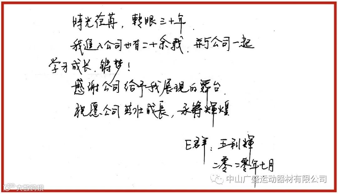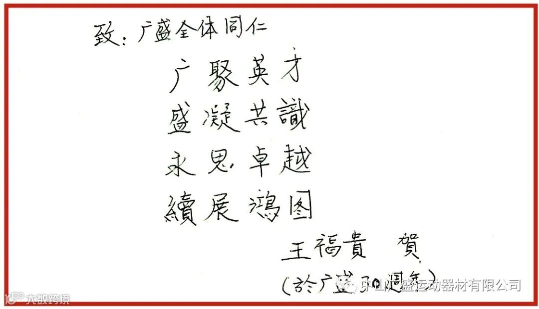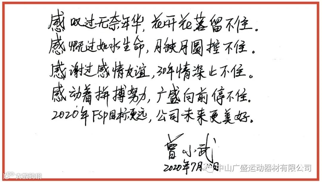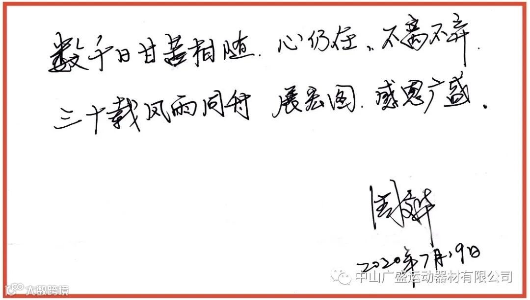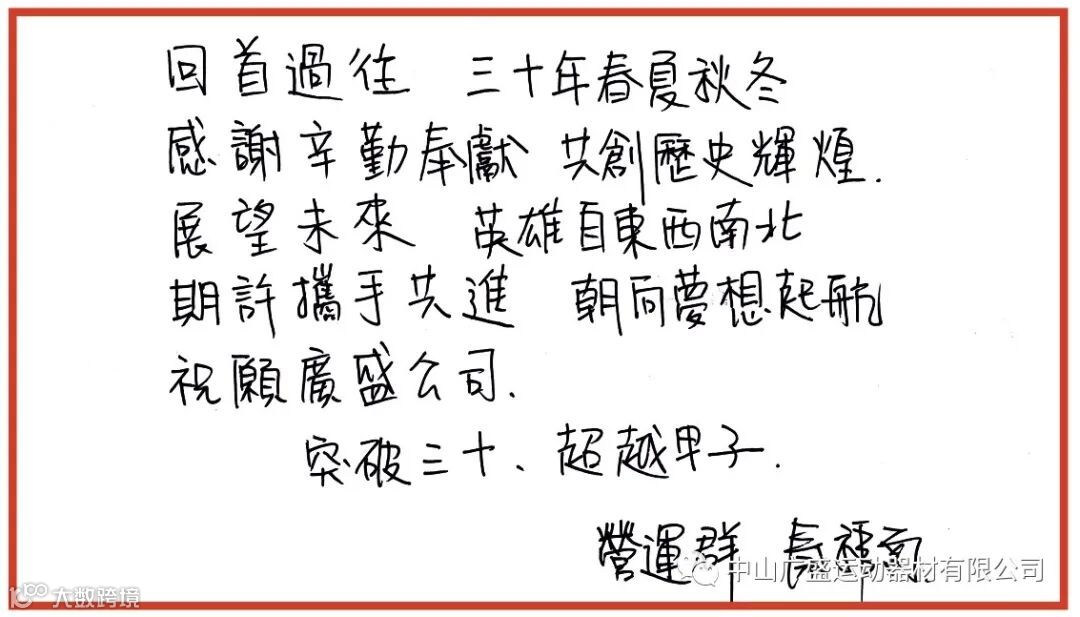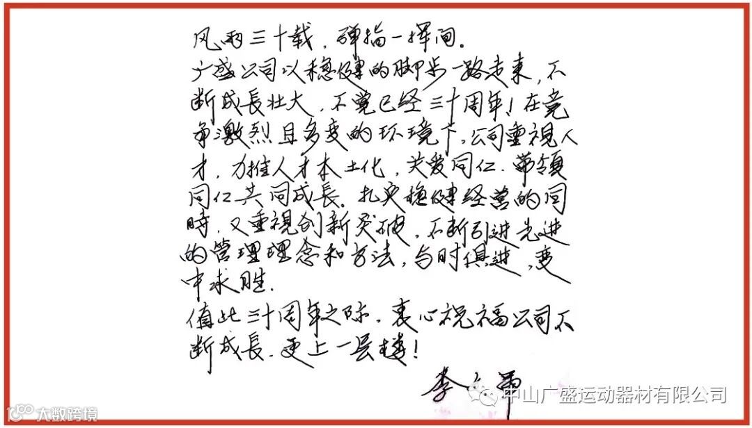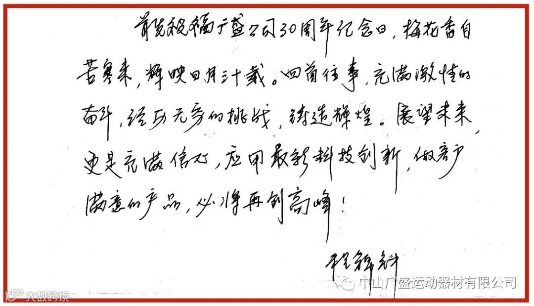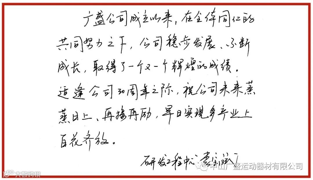 同样借此机会给公司送上最诚挚的亲笔祝福