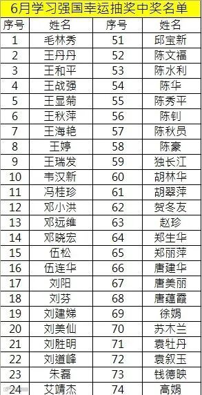 幸运奖获奖名单