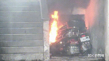 短短三十秒后,明火便迅速吞没了大半辆电动车,滚滚浓烟。