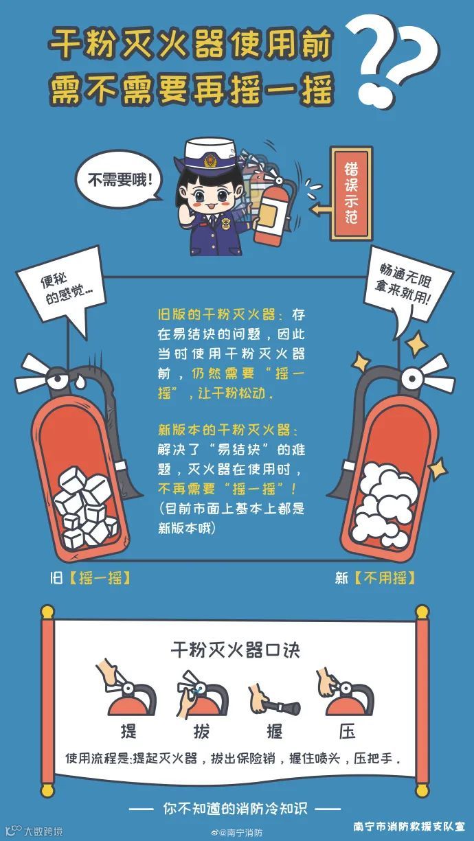导读:生活和工作中,我们有很多不知道的消防冷知识,比如现代的干粉灭火器使用前需要摇一摇吗?消防车为什么是红色?