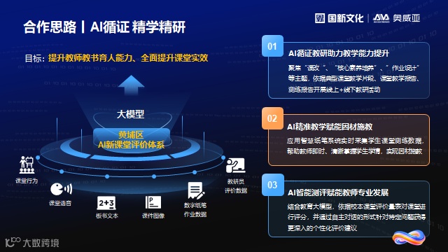 作为黄埔区此次人工智能赋能教育数字化应用场景合作企业之一,奥威亚全新打造出了教育多模态分析模型。这款教育专用大模型,通过构建线下智慧教学空间与线上教师发展智慧平台,以AI技术为支撑,以多模态课堂数据为基础,以“AI教研助手”互动应用为载体,通过AI循证教研、AI精准教学、AI智能测评,分别助力青年教师教学能力提升、学校因材施教、教师专业发展,探索数字化赋能教师发展新路径。