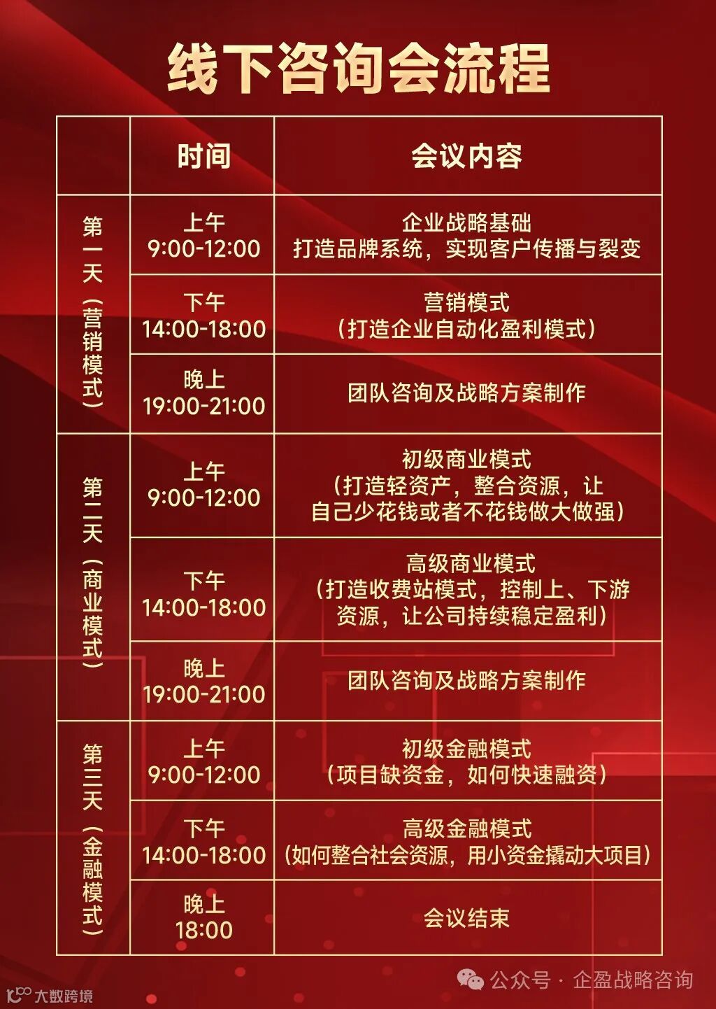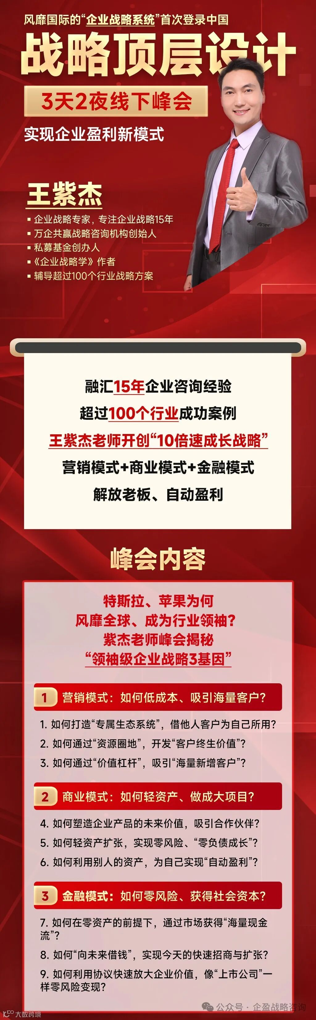 导读:课程内容:1、营销模式:如何低成本吸引海量客户?2、商业模式:如何轻资产做成大项目?3、金融模式:如何零风险获得社会资本?