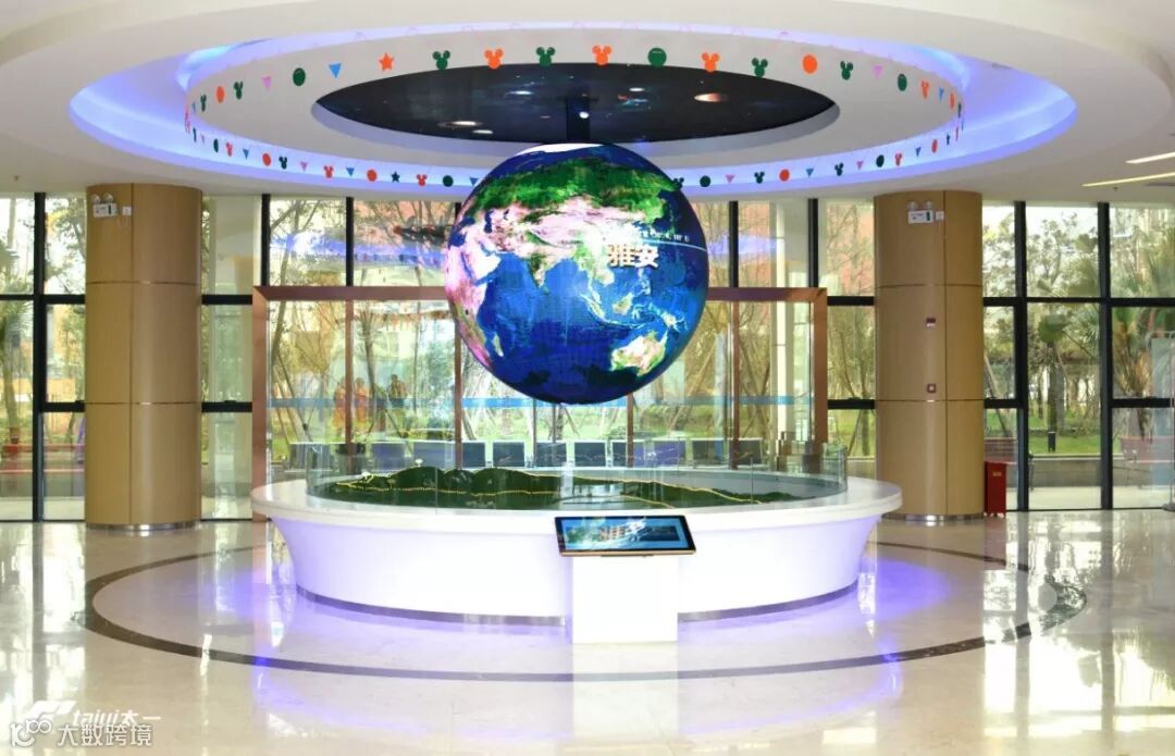 序厅——雅安印象,由顶部天花屏、悬挂的球体、沙盘三部分组成。三者联动,按照宇宙一地球一雅安的逻辑顺序,全面展示雅安。作为展馆的一个重要组成部分, 概括整个展馆设计基调,展示科技馆标志性展项,营造科技特色的环境氛围。