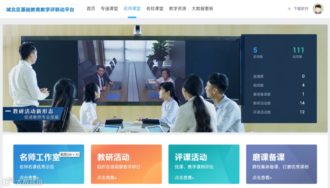 名师课堂应用,通过名师工作室、网络研修等方式,充分发挥名师的示范作用,将名师资源、名师教学理念和教学方式在区域内共享,促进区域内教师教学能力提升。