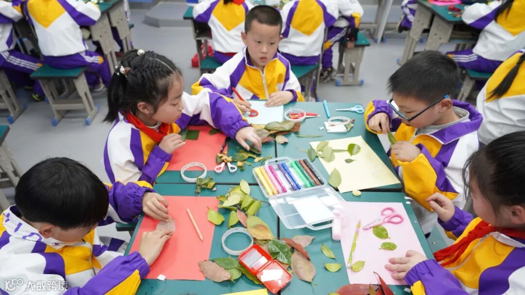 3月11日下午,在植树节来临之际,江西省南昌市朝阳小学与南昌市石头街小学和濠上街小学,共同开展了一堂别开生面的树叶画手工环保公益课。本次活动是学校积极落实“双减”要求,提升教学品质,拓展教学新方式,利用社会资源支持教育教学,提高课后服务水平的有益尝试。