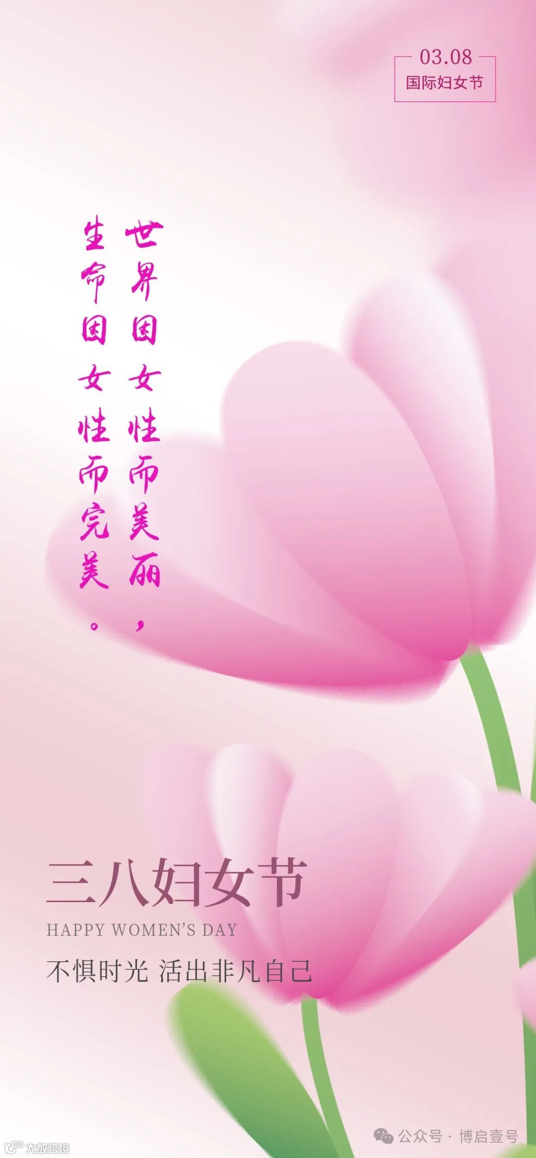 博启壹号岁月因坚韧温暖的女性力量,而更加静好;世间因花样璀璨的奋斗女性,而更加瑰丽;愿你乘风破浪,不负韶华时光;愿你事事如意,享尽世间美好;愿你勇敢前行、风雨无阻;愿你珍爱自己、不忘初心。