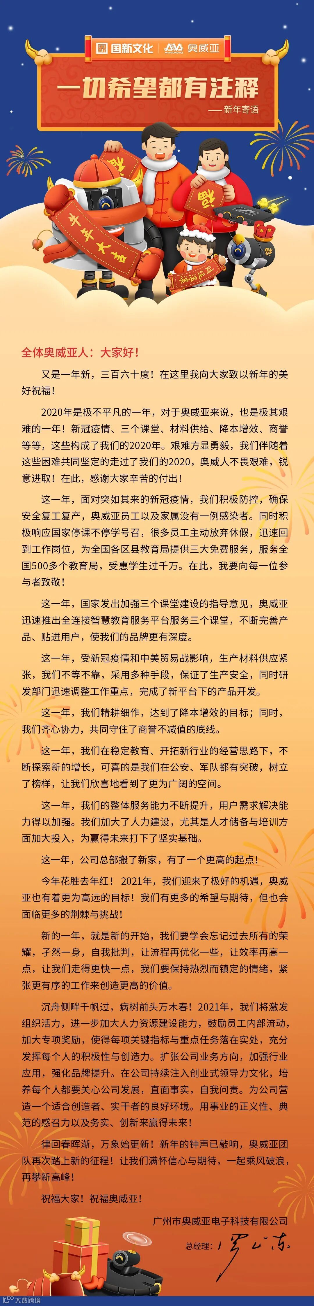 一切希望都有注释——奥威亚总经理新年寄语