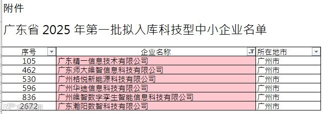 广东省科学技术厅关于广东省2025年第一批拟入库科技型中小企业名单已公布,园区6家谷友企业成功通过认定,创新力量再升级。