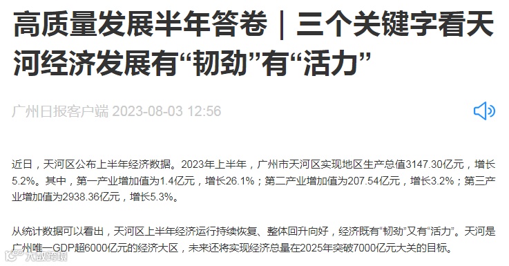 广州日报报道:宏太智慧谷及谷友企业燧光为天河区上半年经济发展作贡献