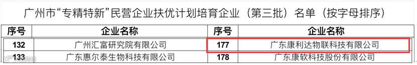 康利达物联入选广州市“专精特新”民营企业扶优计划培育企业(第三批)名单
