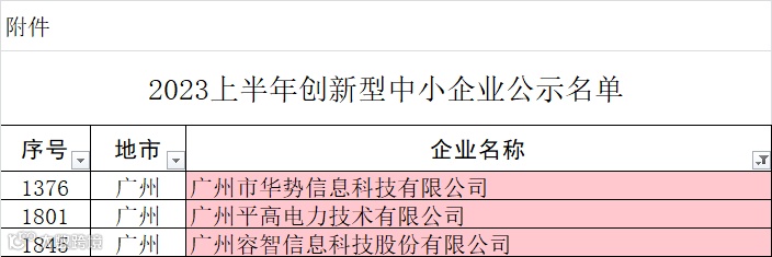 8月,广东省工业和信息化厅关于2023上半年创新型中小企业名单已公示,恭喜华势信息、平高电力、容智信息等3家谷友企业通过认定。