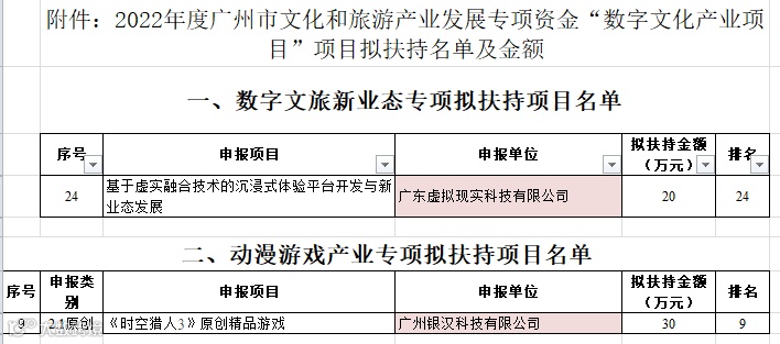 银汉科技、燧光获得2023年广州市文化和旅游产业发展专项资金扶持