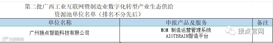 接点智能入选广西工业互联网暨制造业数字化转型产业生态供给资源池