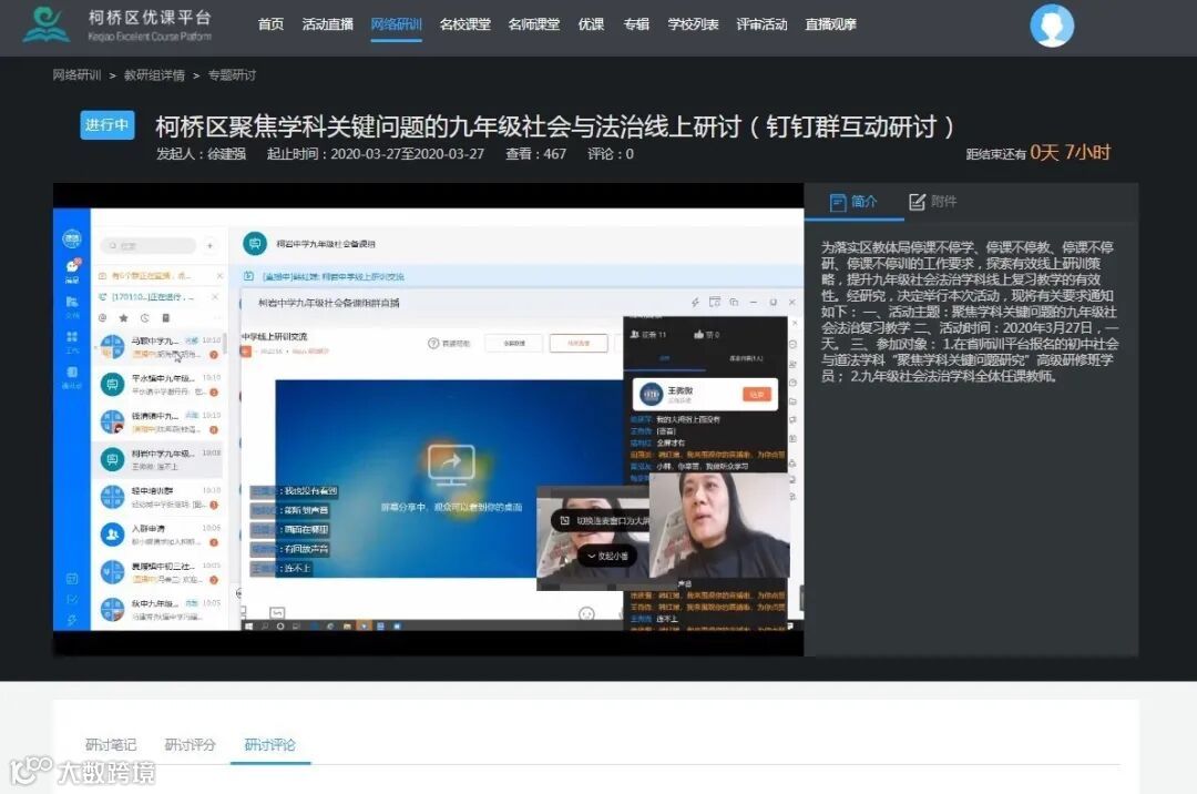 疫情期间,柯桥区创造性地落实上级教育行政部门“停课不停学、停课不停教、停课不停研、停课不停训”的工作要求,各学科陆续利用“天天智慧课堂平台”进行全区性线上研训活动,探索高质、高效的线上研训策略。