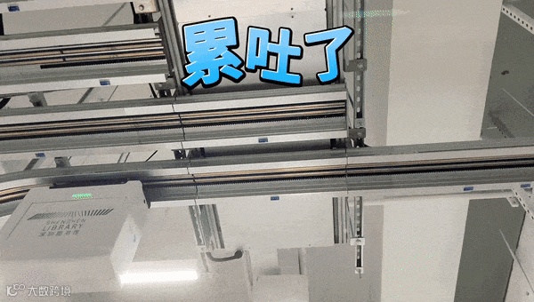 在深圳图书馆,24班轨道小车担任图书快递员的工作。他们要在400万册文献中寻找目标图书,然后通过特定轨道,在天花板上完成垂直爬升、倒挂、转弯等高难度动作,最快8分钟内书将送到读者手中。