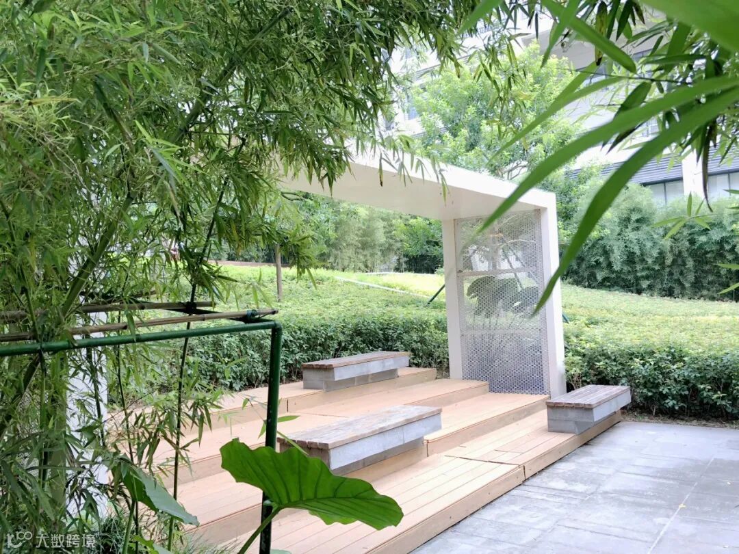 园内凉亭的穿搭也是很可以的,右侧竹影婆娑,前方百年金桂摇曳,时而丹桂飘香,狠狠地拿捏住花园式办公的氛围感,创意也更易被激发。