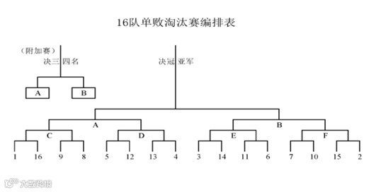 采用淘汰赛+晋级赛的方式,全程共进行4轮(16进8;8进4;半决赛;三四名决赛、决赛),共16场比赛。