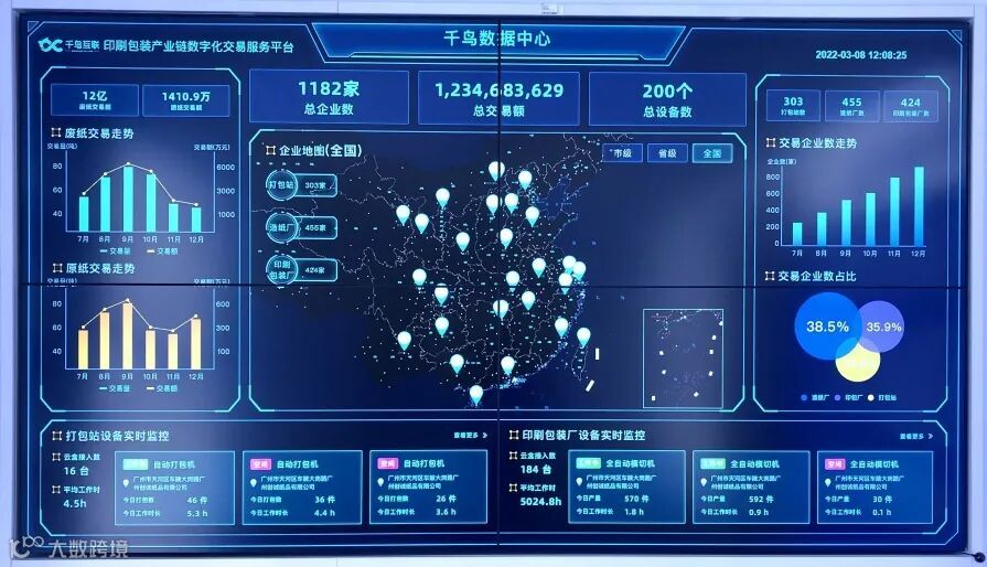 印刷包装产业链数字化交易服务平台,通过旗下智能云工厂、纸掌柜、纸通宝三大平台,利用互联网、大数据、AIOT+MES系统对包装产业链上的印包厂、造纸厂、废纸打包站进行全流程数字化改造赋能,重构印刷包装产业更加高效、便捷的供应链体系,帮助链条中各个角色实现订单的在线交易、智能匹配、柔性生产。千鸟互联业务范围辐射广西、安徽、浙江、福建等超十个省份,单月营收突破2亿元,单月纳税超过2000万。