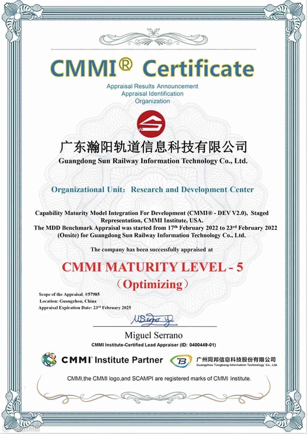 4月,瀚阳通过了CMMI5级评估认证并获得了证书,标志着瀚阳在软件能力成熟度和项目管理方面达到国际先进水平。