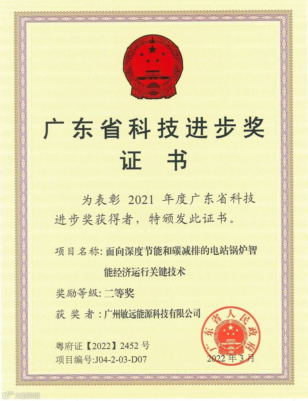 4月,敏远科技项目“面向深度节能和碳减排的电站锅炉智能经济运行关键技术”获广东省科技进步奖。