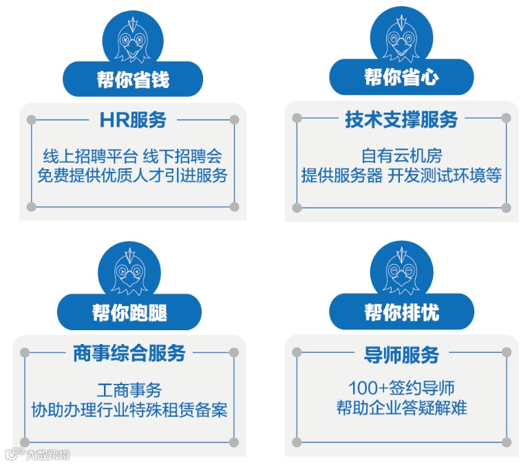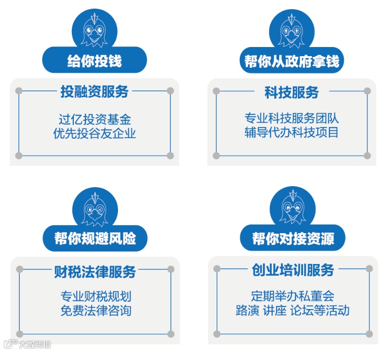 经过多年用心运营、积极探索,目前我已建成“苗圃-孵化器-加速器-产业园”全产业孵化服务链,为入驻企业提供投融资服务、科技服务、人力资源服务、技术支撑服务等专业增值服务。