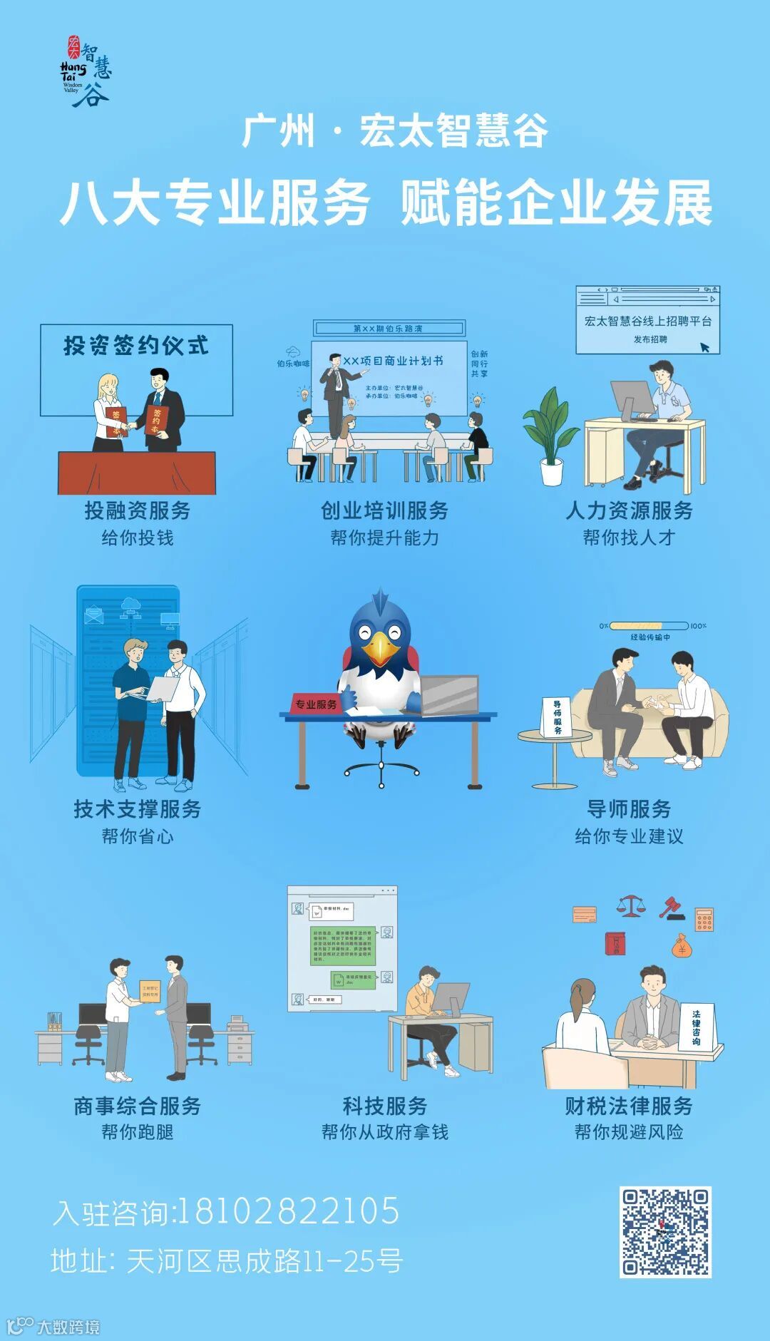 宏太智慧谷作为创业者的同行者,深刻理解创业的难点和痛点,形成八大专业服务,在不同阶段持续为创业者赋能。