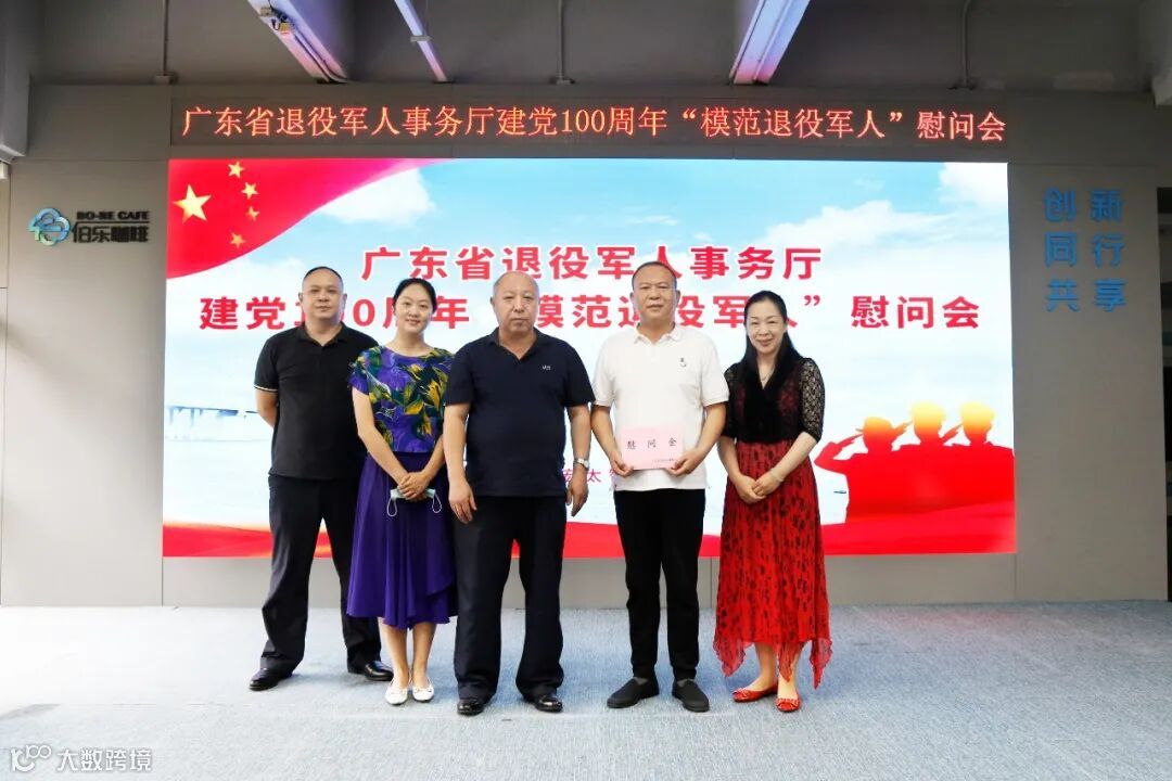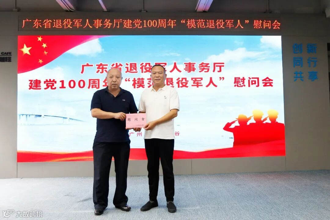 6月4日,建党100周年前夕,广东省退役军人事务厅李克强副厅长一行来到园区,代表厅党组慰问全国模范军转干部,广东省退役军人创业发展促进会会长、宏太智慧谷董事长江枚元同志。