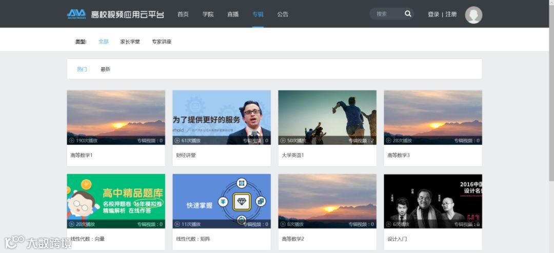 福建师大的同学不仅可以进行课堂教学视频复习,还可以进行“专辑”的学习。平台提供“专辑”模块,老师可根据需求自定义创建视频专辑,将视频资源进行针对性分类。如“高等数学专辑”、“英语写作教程专辑”等。通过课例专辑,学生能够快速查找到想要学习的视频专辑,并能根据老师定义的专辑内容进行按计划进阶学习。