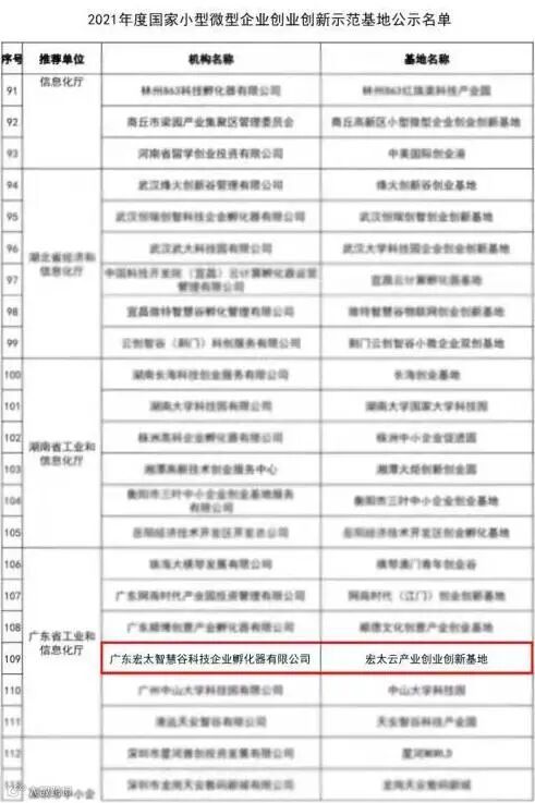 11月,工业和信息化部完成2021年度国家小型微型企业创业创新示范基地名单公示,广州有2家小型微型企业创业创新示范基地入选名单,宏太智慧谷上榜!