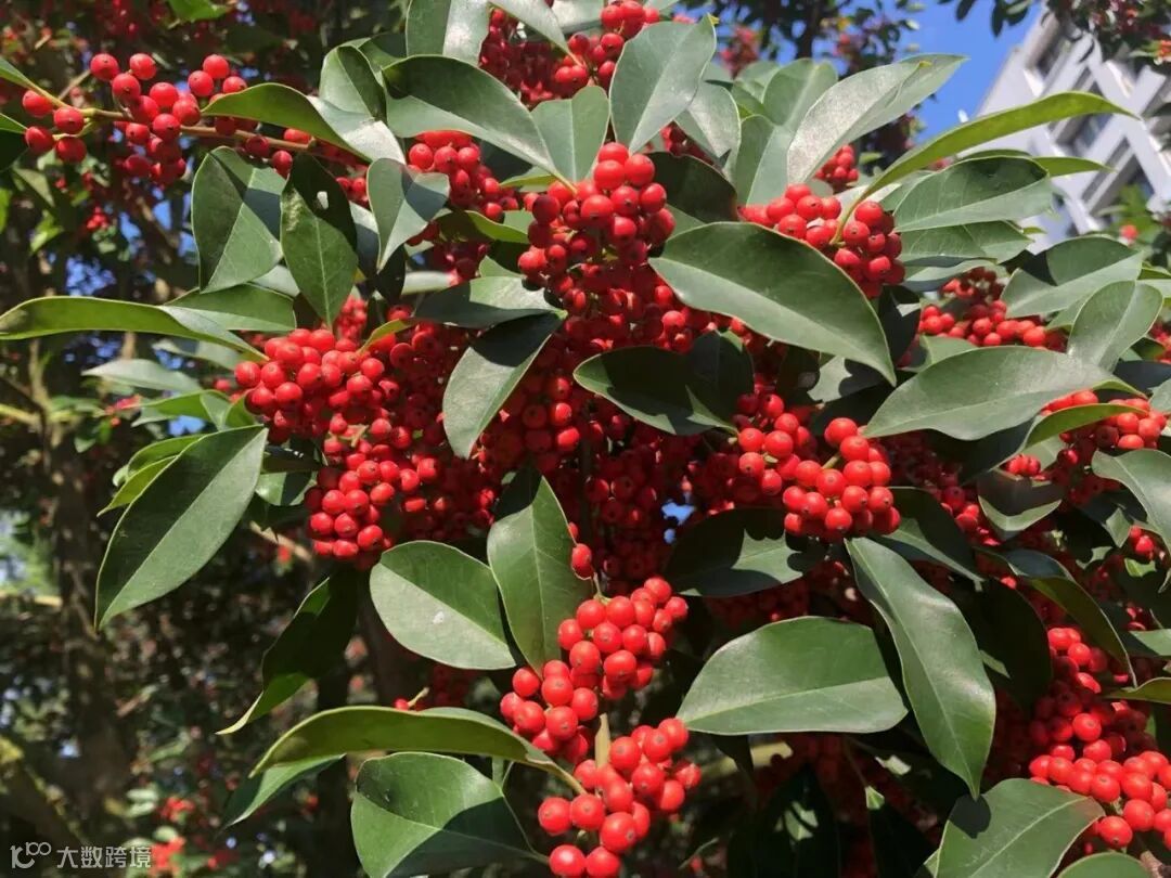 进入秋天,园区的铁冬青果实颜色渐变。深秋叶厚而密,红绿相间,在蓝天映衬下显得生机勃勃。累累红果缀满枝条,吸引众多谷友拍照,满树嫣红,灿烂了整个秋冬。