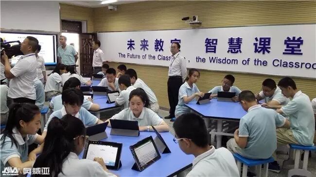 兵团三中“未来教室”和普通课堂的布局完全不同:讲台前方的黑板被两块超大触摸屏幕的电子平板取代,教室四周摆放着6块触摸式一体机。天花板上还安装摄像机和10多台垂挂话筒。课桌不是常规的长方形,而是组成大六边形,方便学生成组讨论。纸质的课本和笔记本被PAD取代,学生只要在屏幕上轻轻滑动,图文并茂、声像兼备的教学内容就出现了。在“未来教室”里,师生的互动会更加频繁,课堂的趣味性也会大大增加。