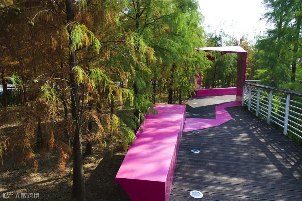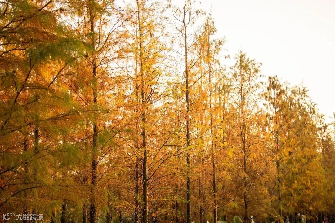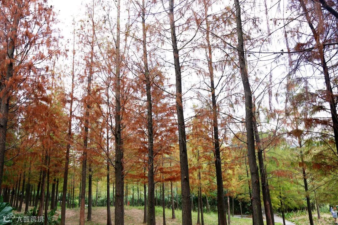 到了深秋,一大片橘红色落叶杉散发着油画般的温柔,不管是走木栈道,还是轻轻靠着栏杆,或是在一片长满狗尾巴草的湖泊边,都能感受到南国的特有秋色。