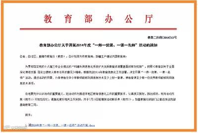 7月3日,中华人民共和国教育部办公厅根据教育部2014年教育信息化工作部署,在全国开展“一师一优课,一课一名师”活动。