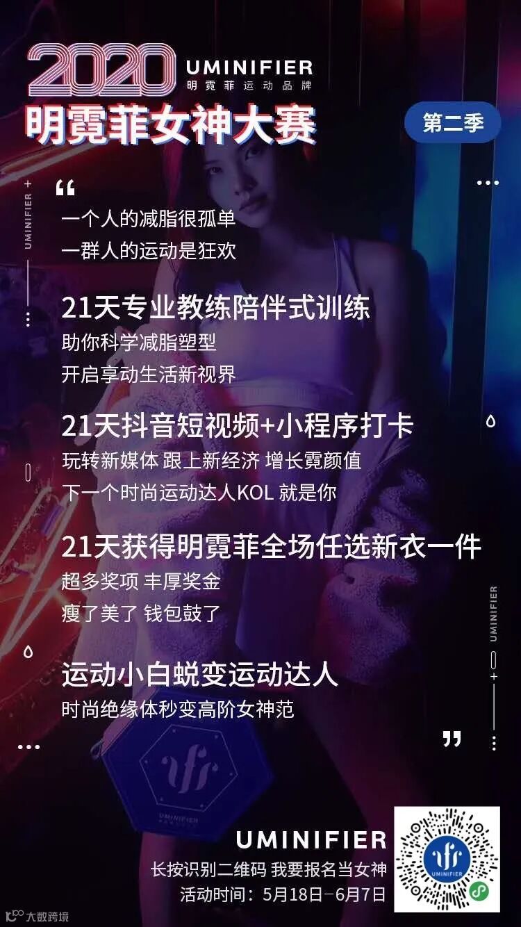 2、发掘更多与明霓菲有共同生活理念的女性,选拨培养百万明霓菲U伙伴和时尚运动KOL。