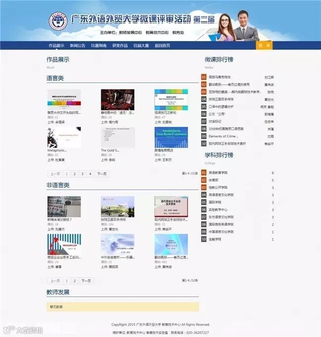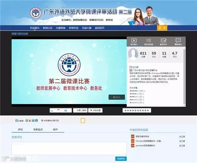 广外深知微课大赛会涉及多项繁杂的步骤工作,并找到知名录播厂家奥威亚。针对广外的实际情况,奥威亚在应用平台上专门设计打造了微课比赛活动的栏目,将传统的评课步骤一一简化。现在,评课专家可以在线上完成所有的评课步骤,再也不用看到厚厚的纸质评价表了~