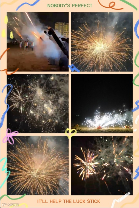 夜幕降临,真正的重头戏来了!大家人手一支“加特林”烟花(安全版),对着夜空疯狂输出!烟花火光划破黑暗,欢呼声此起彼伏。这个夜晚,海风、星光与烟火,交织成最难忘的回忆。