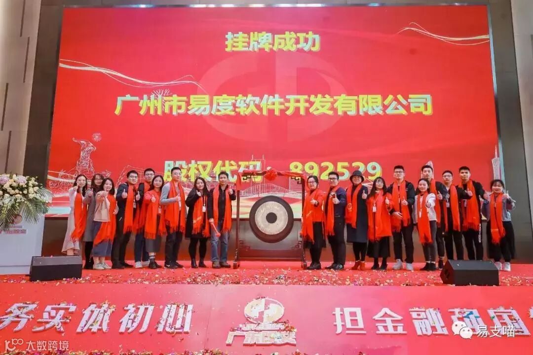 2019年12月6日,广州市易度软件开发有限公司(简称“易度软件”)在广东股权交易中心成功挂牌(股权代码:892529)!易度软件总经理王楠、技术总监李笔锋、市场总监张乙浩以及易度伙伴共同敲响了新四板资本大钟,一起见证易度软件荣耀时刻。成功挂牌新四板,预示着易度软件迈上了一个全新的发展平台。