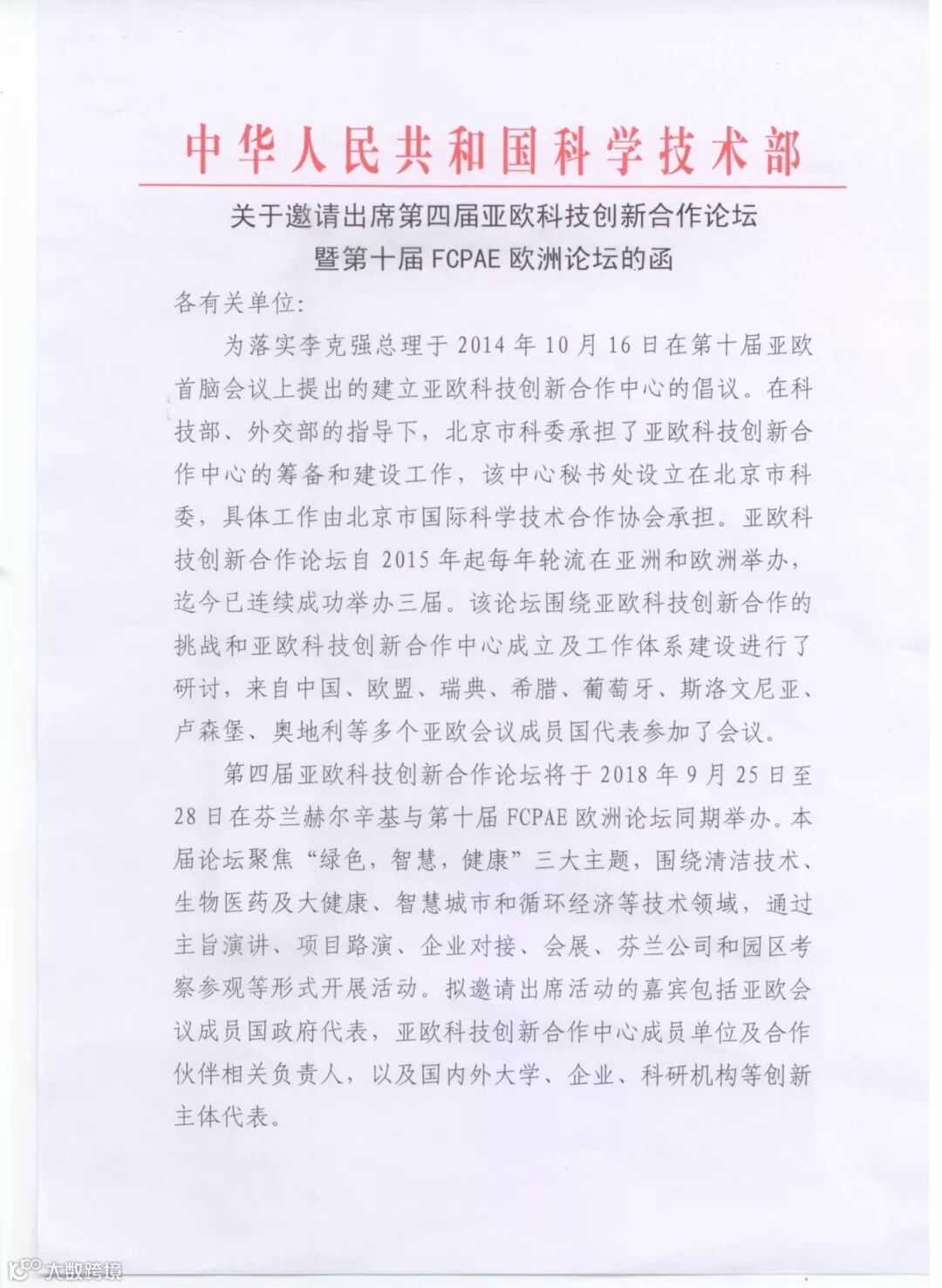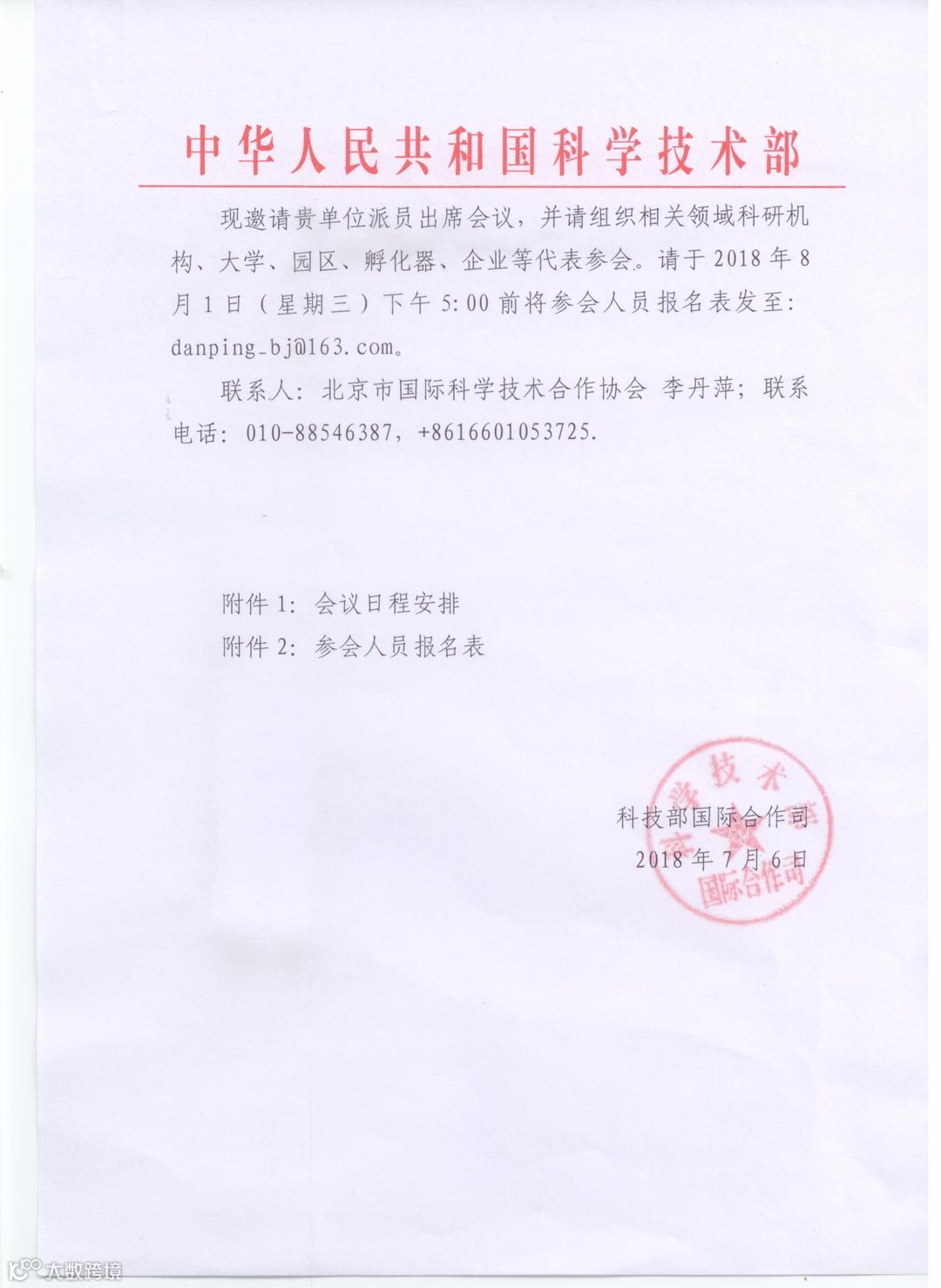 中国科技部邀请函