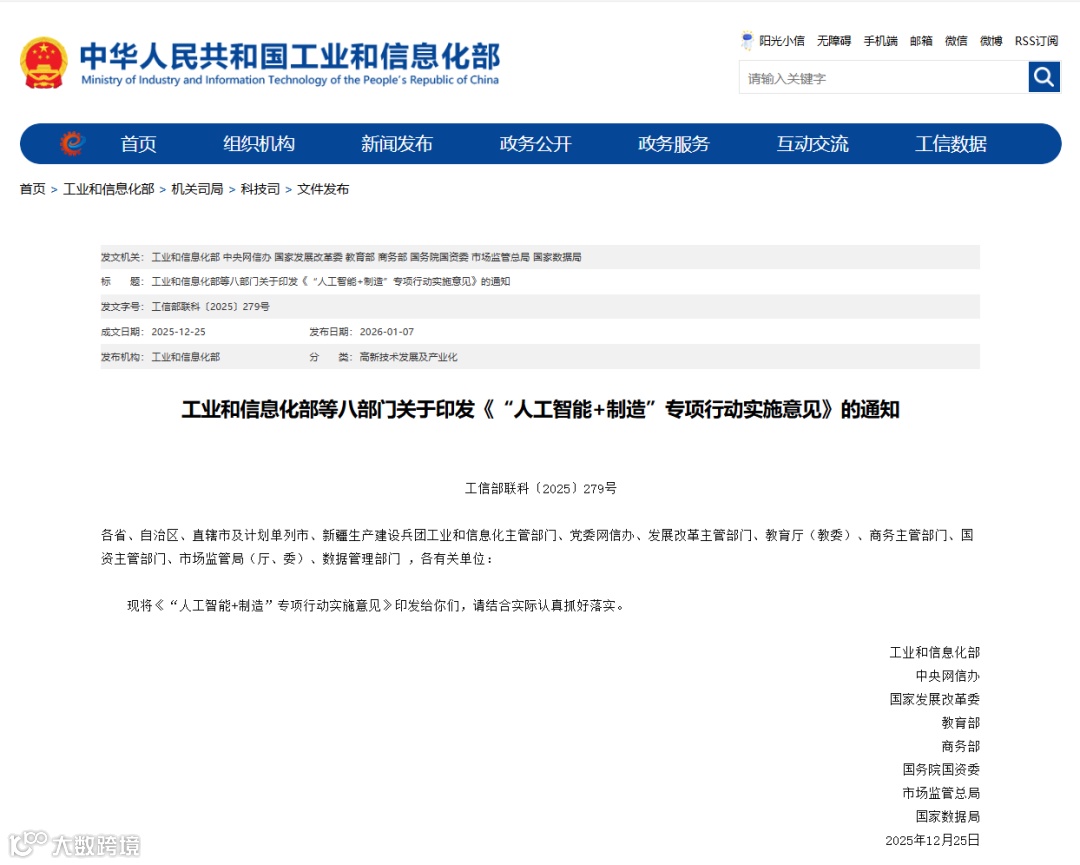 人工智能加速与实体经济深度融合,深刻改变制造业生产模式和经济形态,成为驱动产业升级、重塑全球格局的关键变量。为贯彻落实《关于深入实施“人工智能+”行动的意见》,加快推进人工智能技术在制造业融合应用,打造新质生产力,全方位、深层次、高水平赋能新型工业化,制定本实施意见。