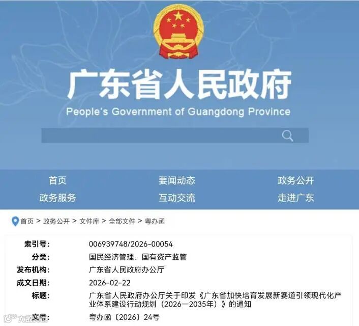 广东省人民政府办公厅关于印发《广东省加快培育发展新赛道引领现代化产业体系建设行动规划(2026—2035年)》的通知