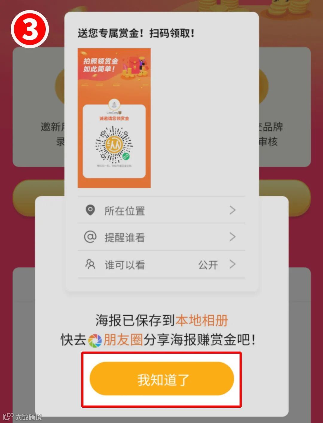 分享海报至朋友圈,让好友扫码注册,完成任务