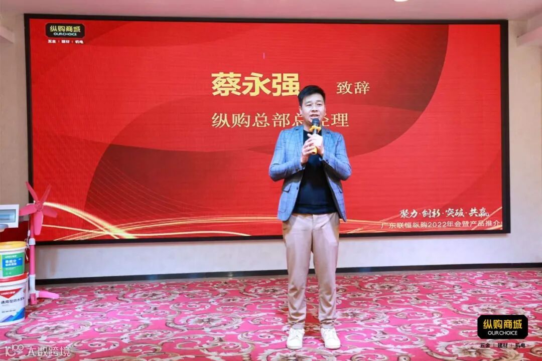 在开场致辞中,纵购总部总经理蔡永强介绍了纵购的产业布局、业务领域、运营模式以及在产业互联网领域的优势等。表示,科技创新、信息技术为驱动的数字浪潮正在深刻影响着各行各业,五金建材机电迎来发展新契机,纵购致力打造多元化、多层次、多渠道、全服务智能一体化的采购服务平台,在全球范围内建立独具特色的产业价值链,共享五金建材机电万亿市场,深度赋能各生态合作伙伴,打造互联互通、持续发展、共生共荣的五金建材交易生态圈。