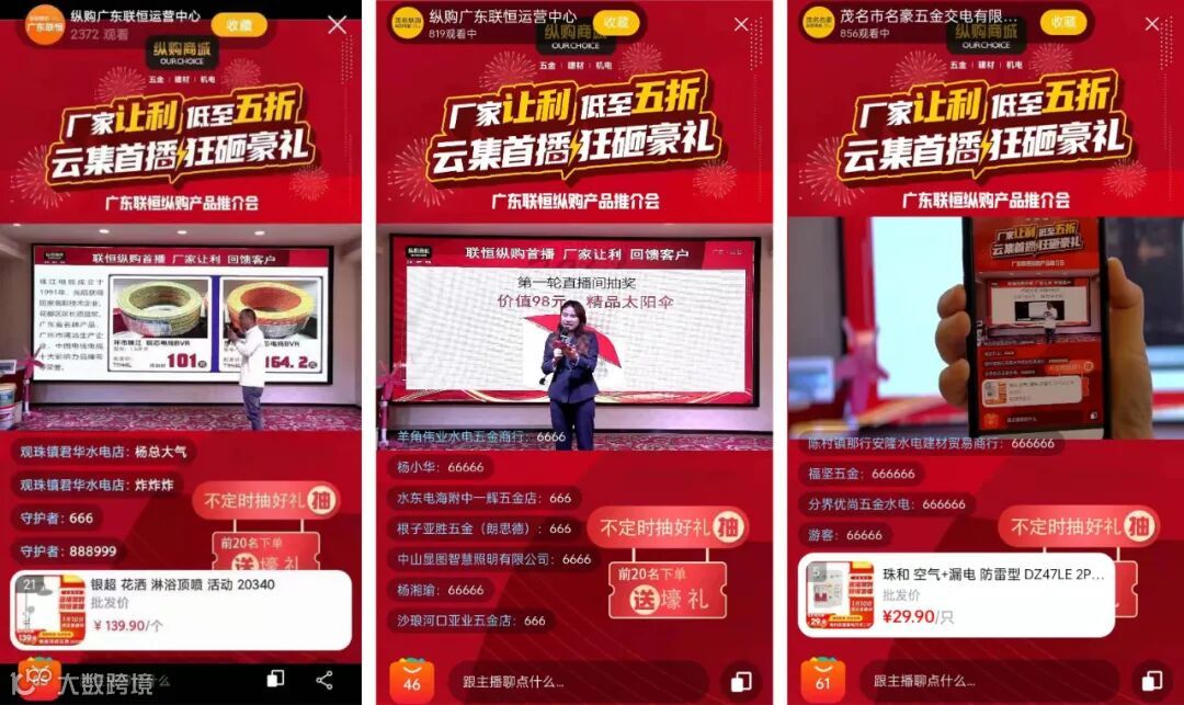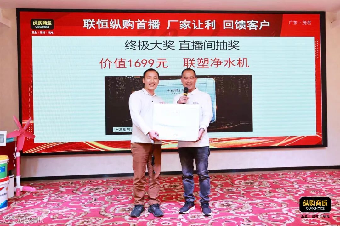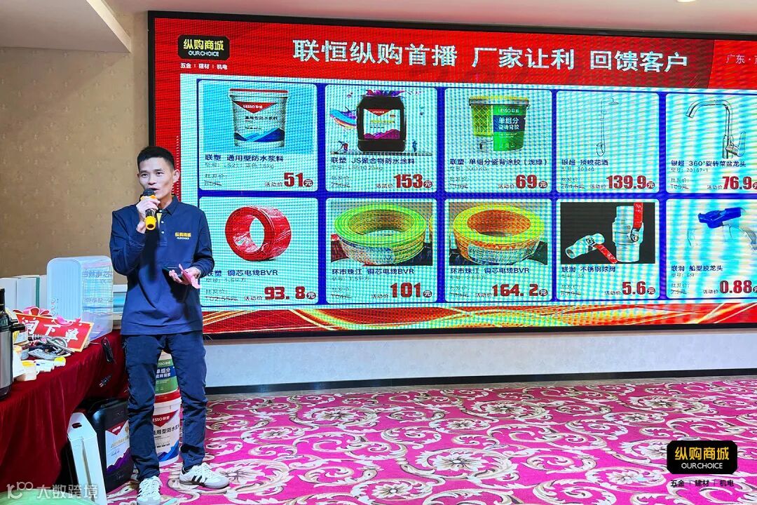 年会上,联恒纵购并联合联塑、纵购自主品牌领兴、德力西、珠和、秋福、守护着、银超、环市珠江、安创、东翼、金其泰、聪超、远东、联润、泰牛、速仕达、东星等十几个品牌商在纵购云集进行直播大促,推出了一系列劲爆优惠、限量秒杀和抽奖等活动,引得客户纷纷下单抢购,成交汹涌,销售业绩单日创新高。